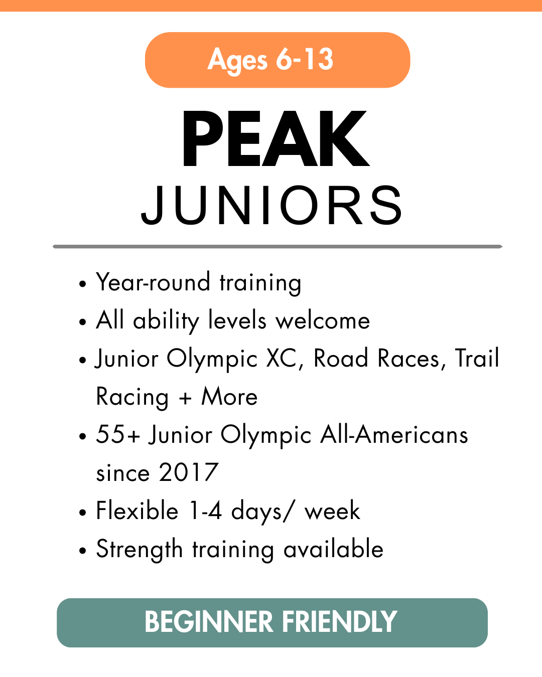 Built in the Foothills, athletes of Peak Performance Running have competed at the top level of competition from The World Youth Mountain Running Championships, USA Track and Field Regional and National Track and Field meets, and the USA Track and Field Regional and National Cross Country meets.