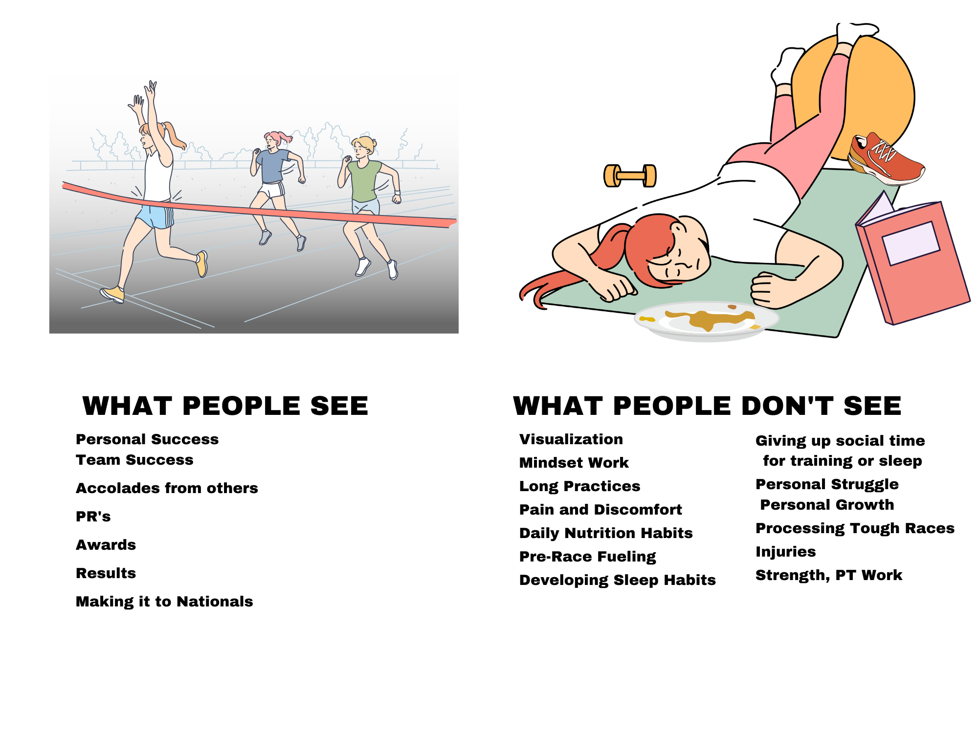 I’ll be blunt. You won’t improve as quickly if you do the minimum of what’s asked of you. Dig in a little deeper - what needs to change for you to accomplish your goal? You will see the biggest shift in performance when you take ownership of the little things that make up the big things. Quite often, the daily practices go unsee. It seems like there is an understanding that if an athlete states a goal, and shows up for practice, the results will just happen because you participated. When you make personal growth a daily practice, you get better as a runner, student, friend, and person. Here are a few things to think about to create a daily practice.